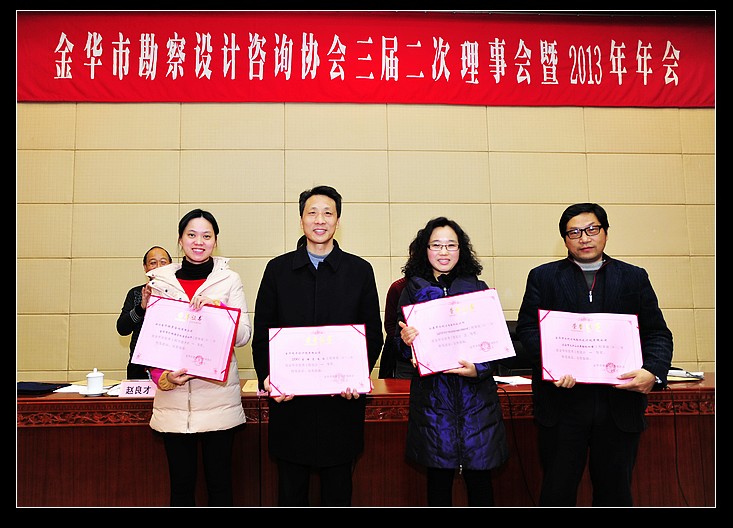 2014年1月10日下午,金華市勘察設(shè)計(jì)咨詢(xún)協(xié)會(huì)三屆二次理事會(huì)暨2013年會(huì)在市文化中心西區(qū)304會(huì)議室隆重召開(kāi)。會(huì)議由協(xié)會(huì)副理事長(zhǎng)兼秘書(shū)長(zhǎng)趙良才主持。全市50多家理事單位代表參加會(huì)議。市住房和城鄉(xiāng)建設(shè)局建筑節(jié)能與科技設(shè)計(jì)處許春福處長(zhǎng)出席會(huì)議。吳學(xué)敏理事長(zhǎng)作了協(xié)會(huì)2013年工作總結(jié)和2014年工作意見(jiàn)的報(bào)告。會(huì)議為獲得2012年度金華市優(yōu)秀勘察設(shè)計(jì)項(xiàng)目和個(gè)人頒獎(jiǎng)。許春福處長(zhǎng)就“四庫(kù)一平臺(tái)”、勘察外業(yè)見(jiàn)證、施工圖審查、節(jié)能評(píng)估和審查、勘察設(shè)計(jì)單位綜合考評(píng)、培訓(xùn)交流等工作做了布置。會(huì)議圓滿(mǎn)完成了各項(xiàng)議程。